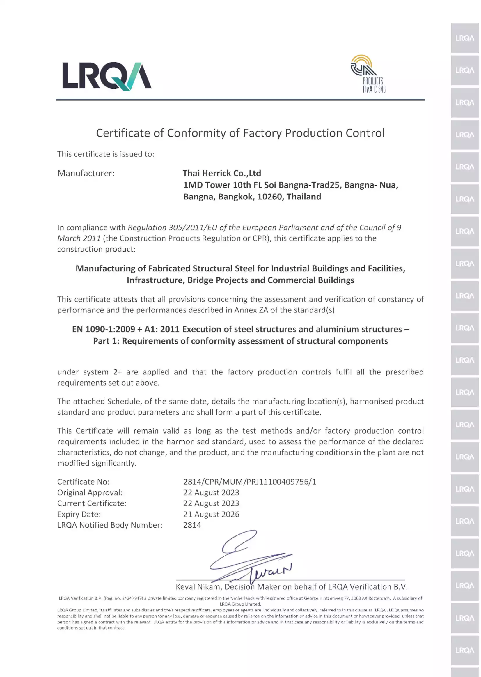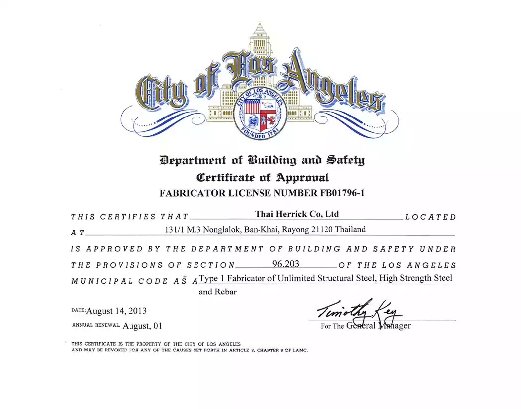 By integrating rigorous quality control measures with global certifications, Thai Herrick ensures that our clients receive safe, high-performance, and industry-compliant steel solutions for every project.