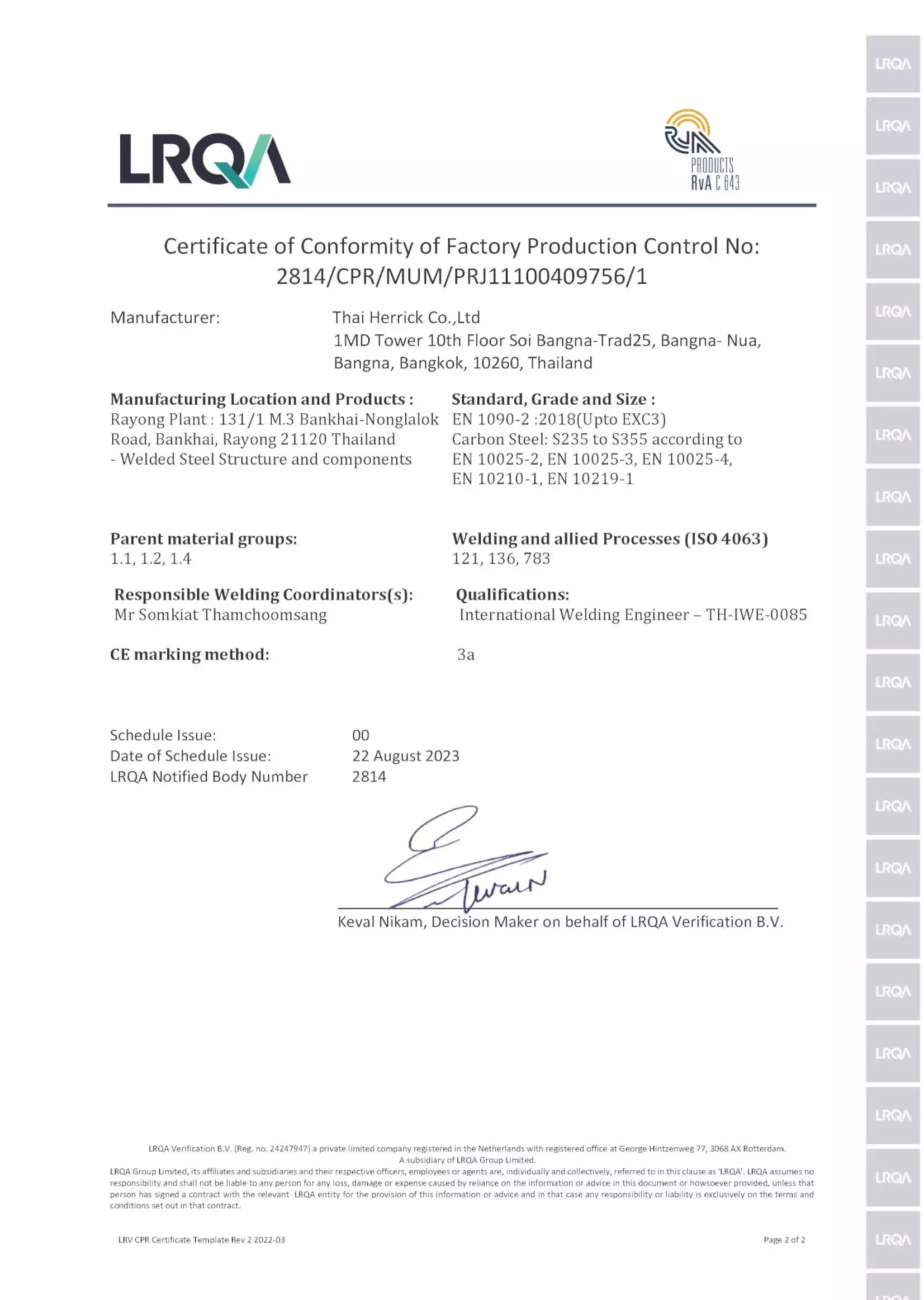 - ISO 3834 Part 2 – International Welding Quality Standards