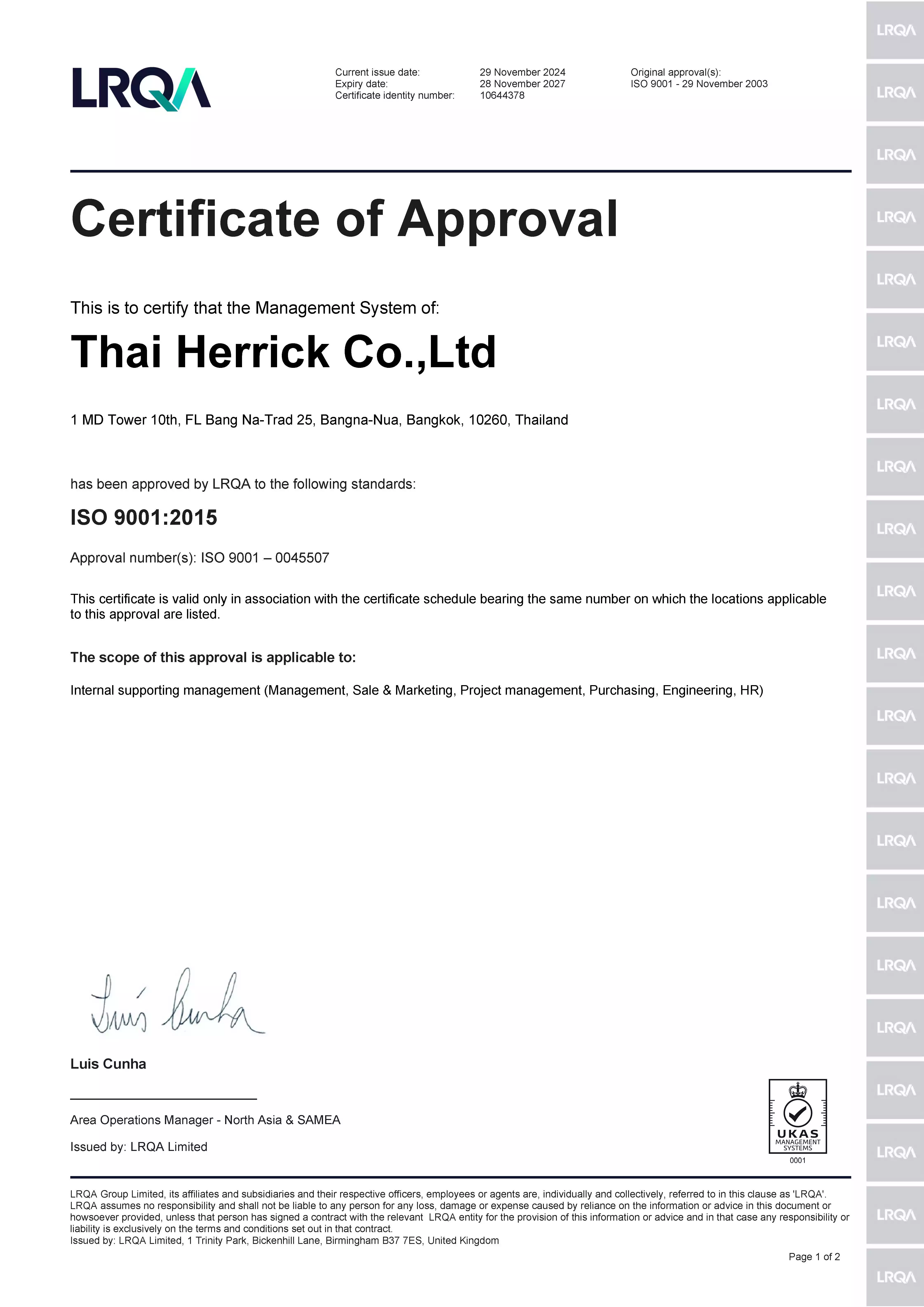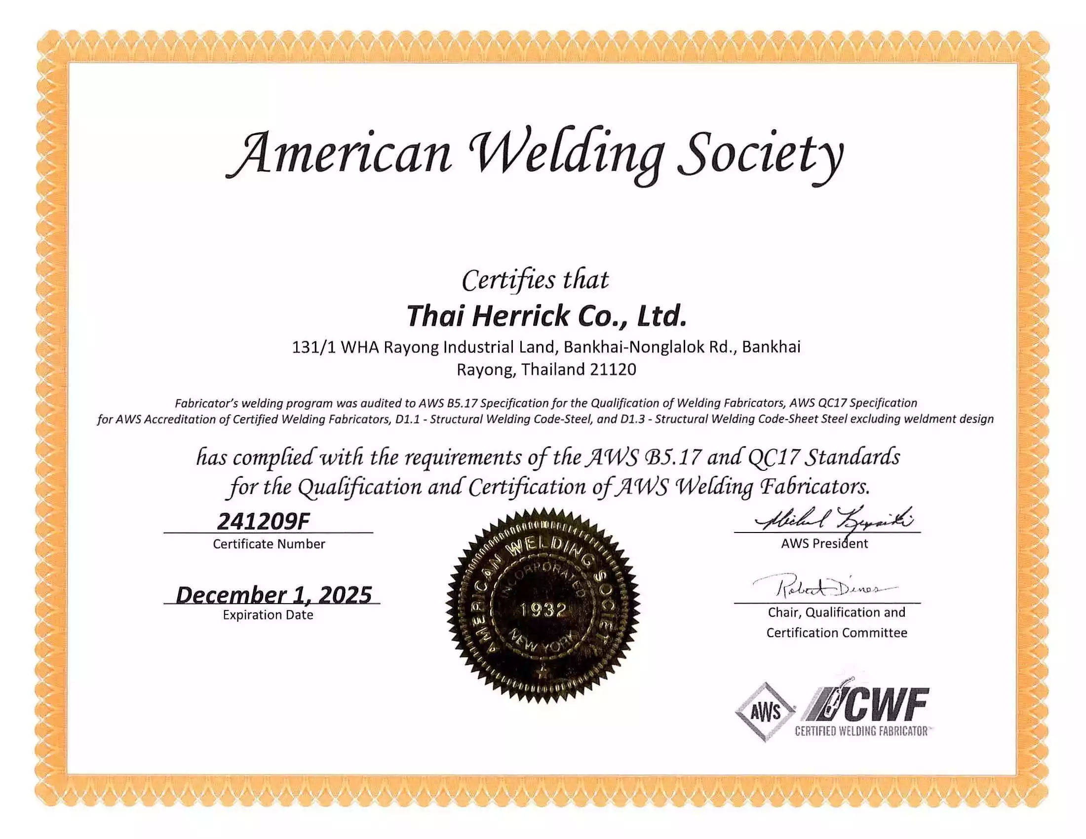 Thai Herrick proudly holds multiple industry-leading certifications, demonstrating our dedication to quality, safety, and compliance: