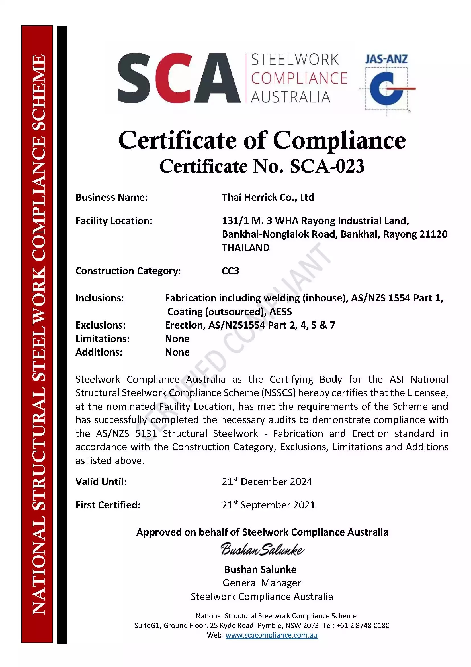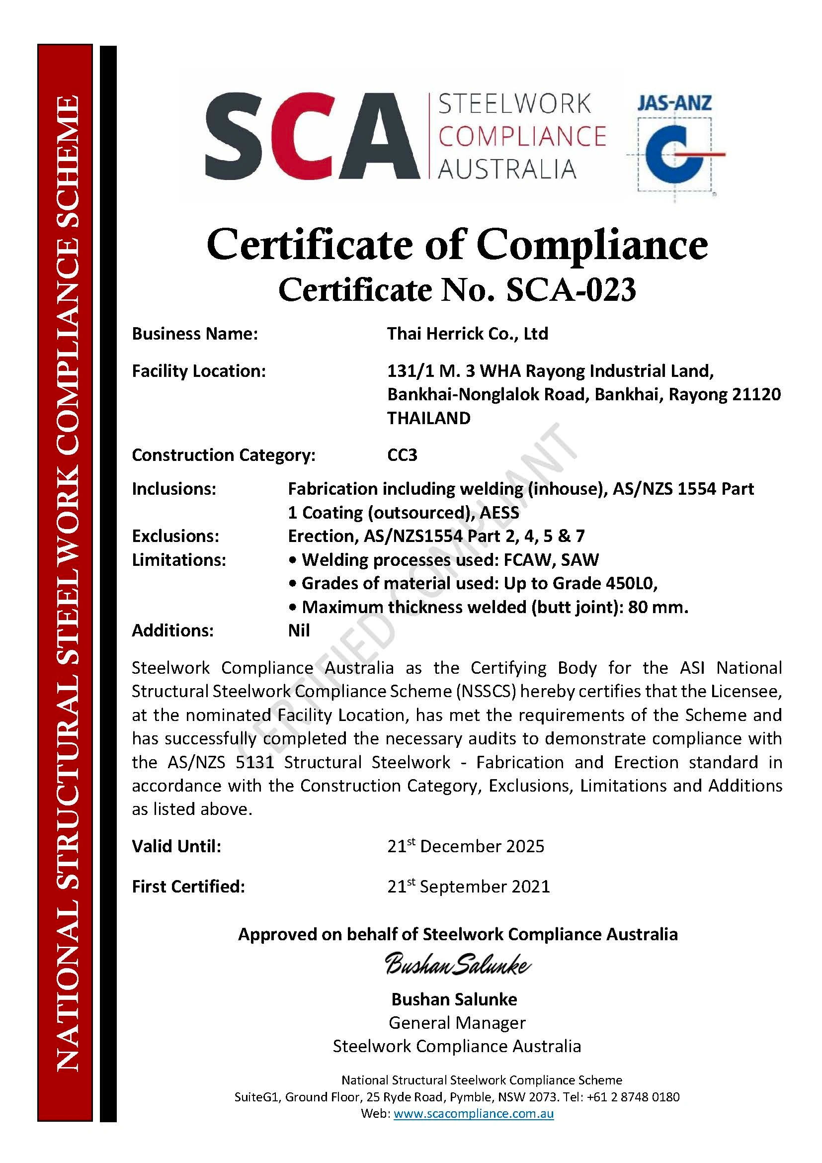 - Steelwork Compliance Australia (SCA – CC3) – Australian Steel Standards